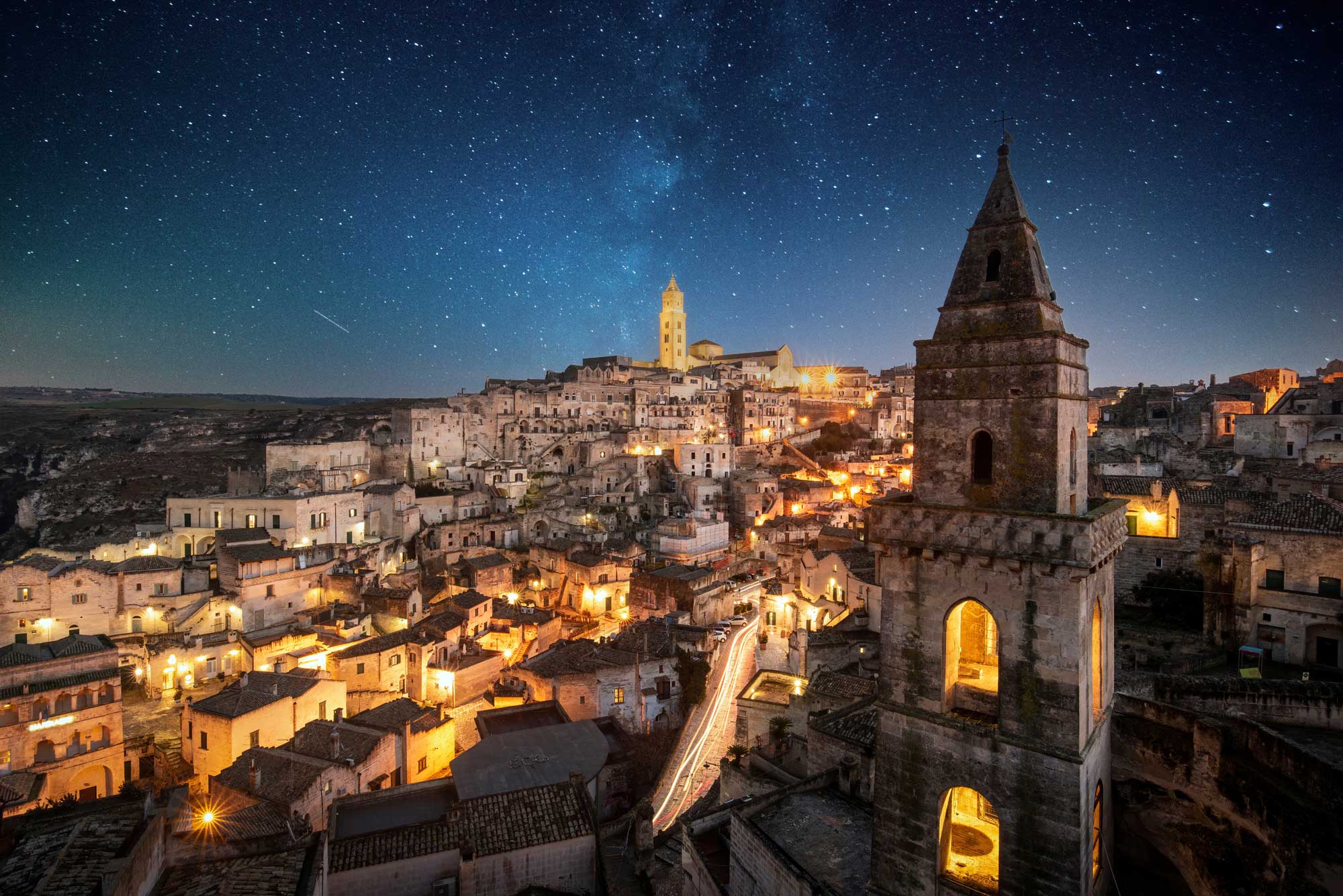 Due antichi rioni scavati nella roccia, Sasso Barisano e Sasso Caveoso, caratterizzati da case-grotta, chiese rupestri e panorami mozzafiato.